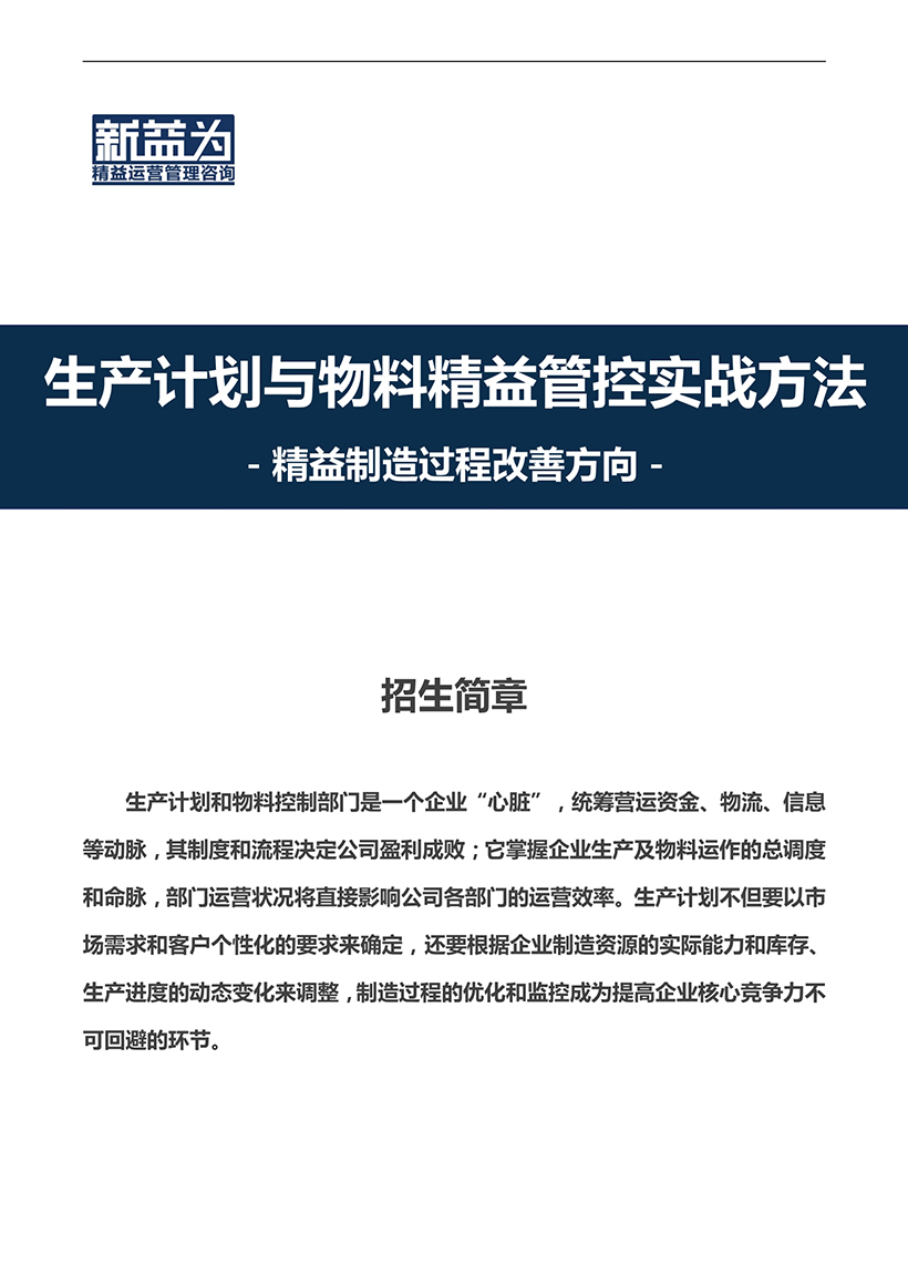 重慶2021.04 PMC—生產(chǎn)計劃與物料精益管控實戰(zhàn)方法