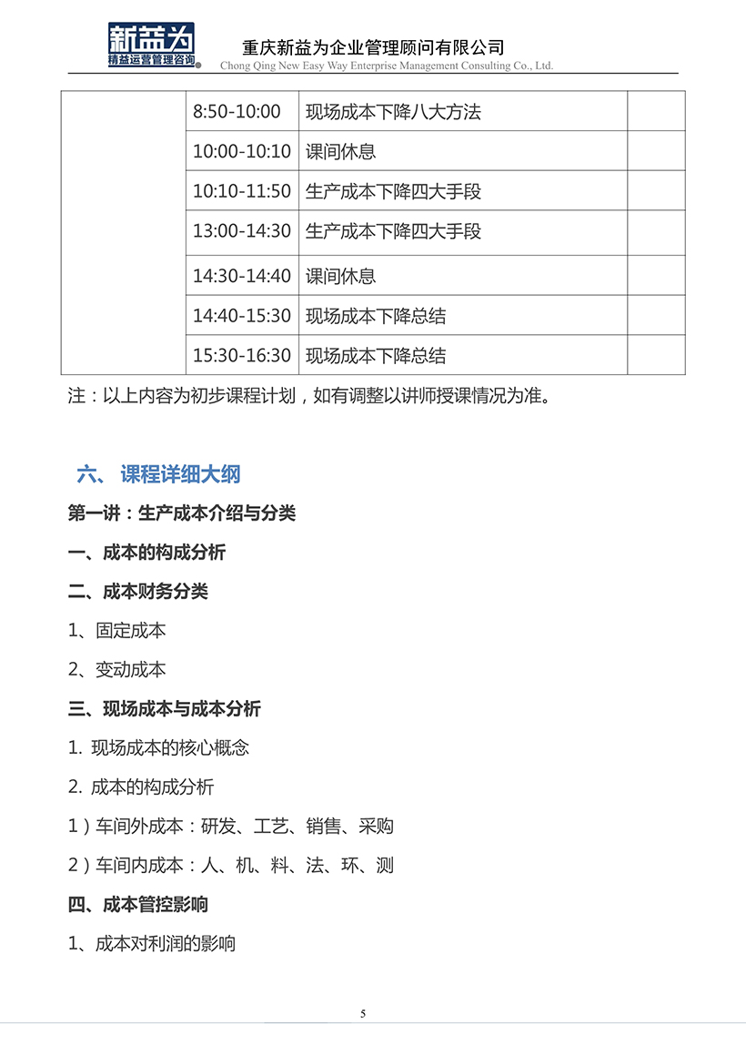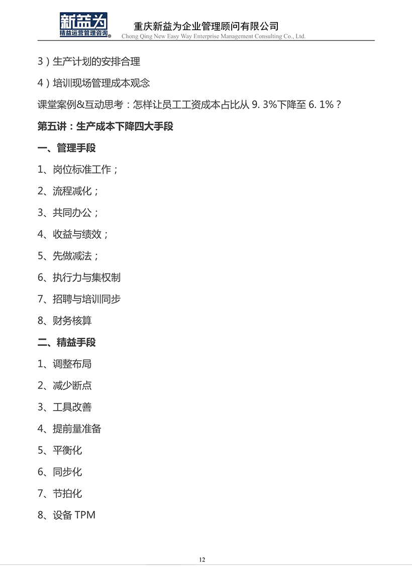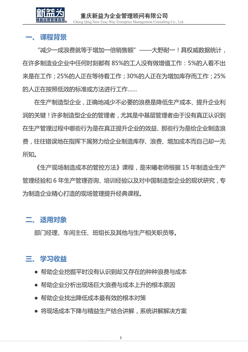 重慶2021.05 制造業(yè)精益成本控制實戰(zhàn)技法